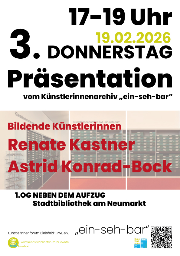 Überblicksartige Vorstellung meiner künstlerischen Arbeiten im Rahmen der Reihe von Präsentationen von Künstlerinnen aus der ein-seh-bar: